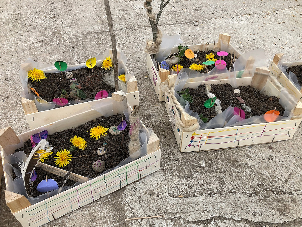 Wir sieben und mischen eine Anzuchterde und füllen diese in kleine Holzkisten / Kartons. Dort gestaltet Ihr Euren eigenen Minigarten: Beete, Wege, Samen aussäen und das Ganze mit Naturfundstücken schmücken!